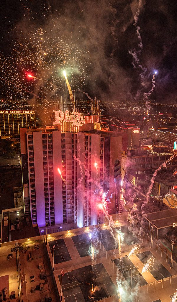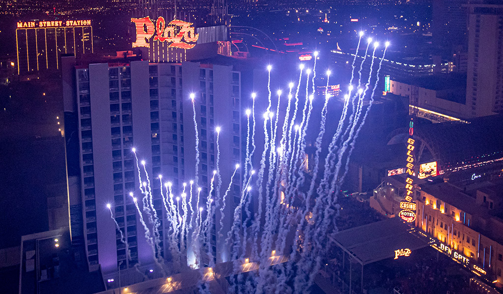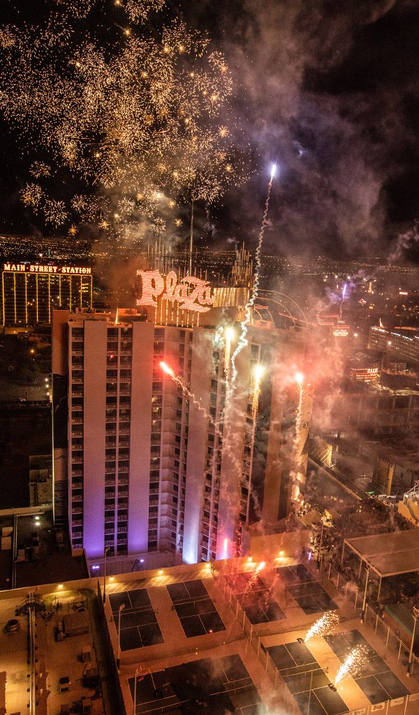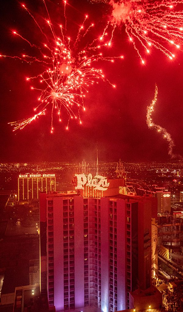 After the sun sets, the Plaza pool transforms into the ultimate rooftop destination to watch our spectacular grand finale fireworks illuminate the Downtown Las Vegas skyline for America’s 250th anniversary.