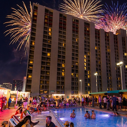 Friday, July 3rd: "Welcome to the Weekend" Fireworks & Pool Party Saturday, July 4th: All-Day Pool Deck Party, DJ, & Grand Finale Fireworks