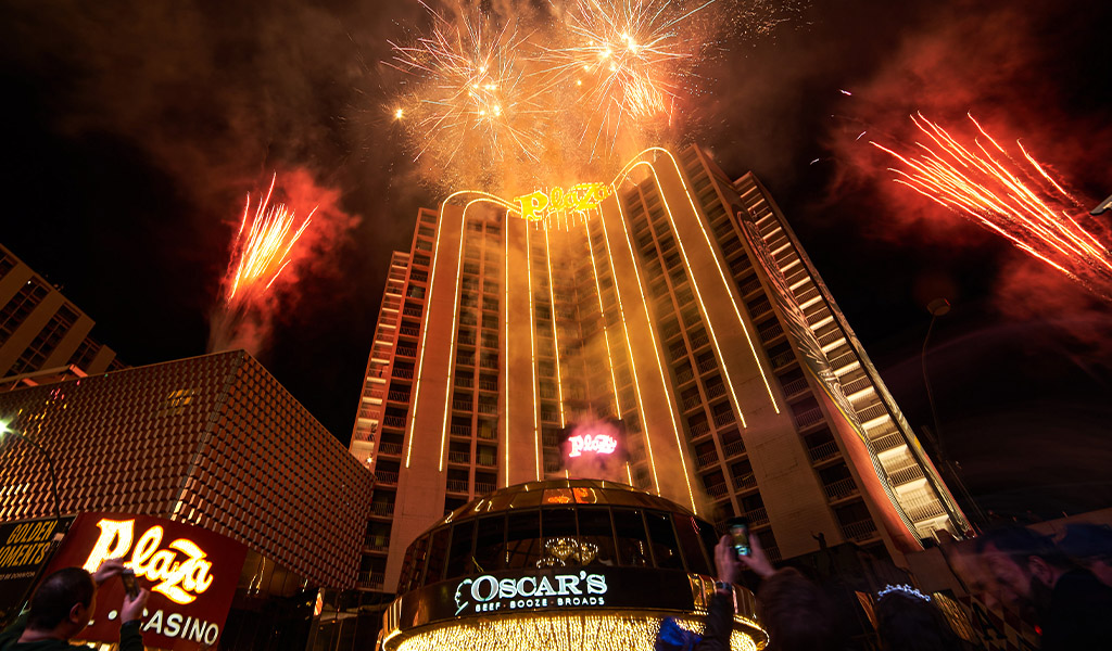 At midnight, experience Plaza’s annual, and Downtown’s only, New Year’s Eve Fireworks show. Prime viewing spots include on Main Street (which will be closed to vehicles), in front of the Plaza’s Carousel Bar and Oscar’s under the glass dome.