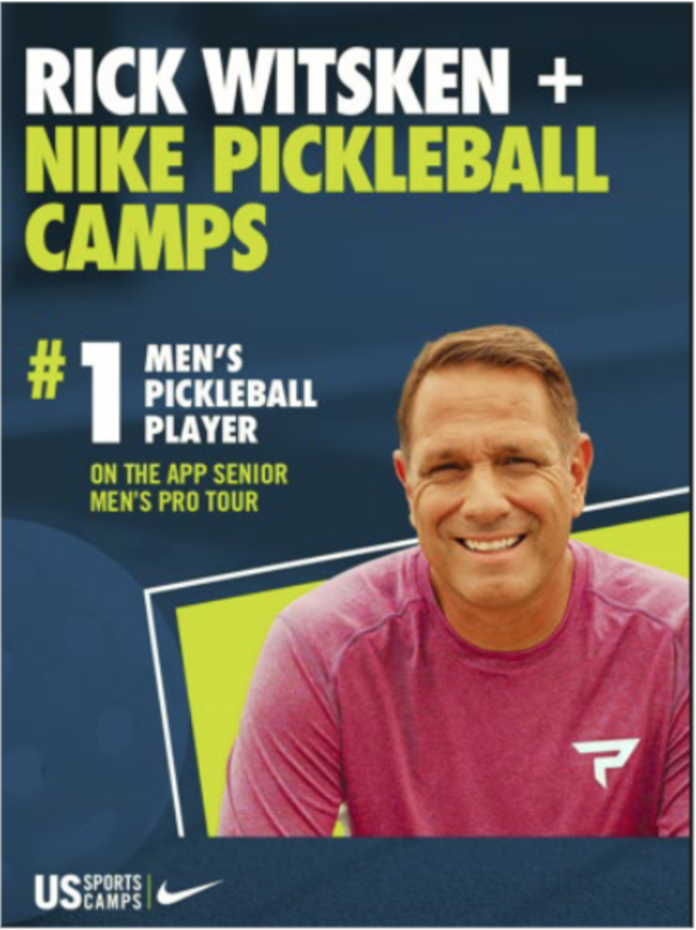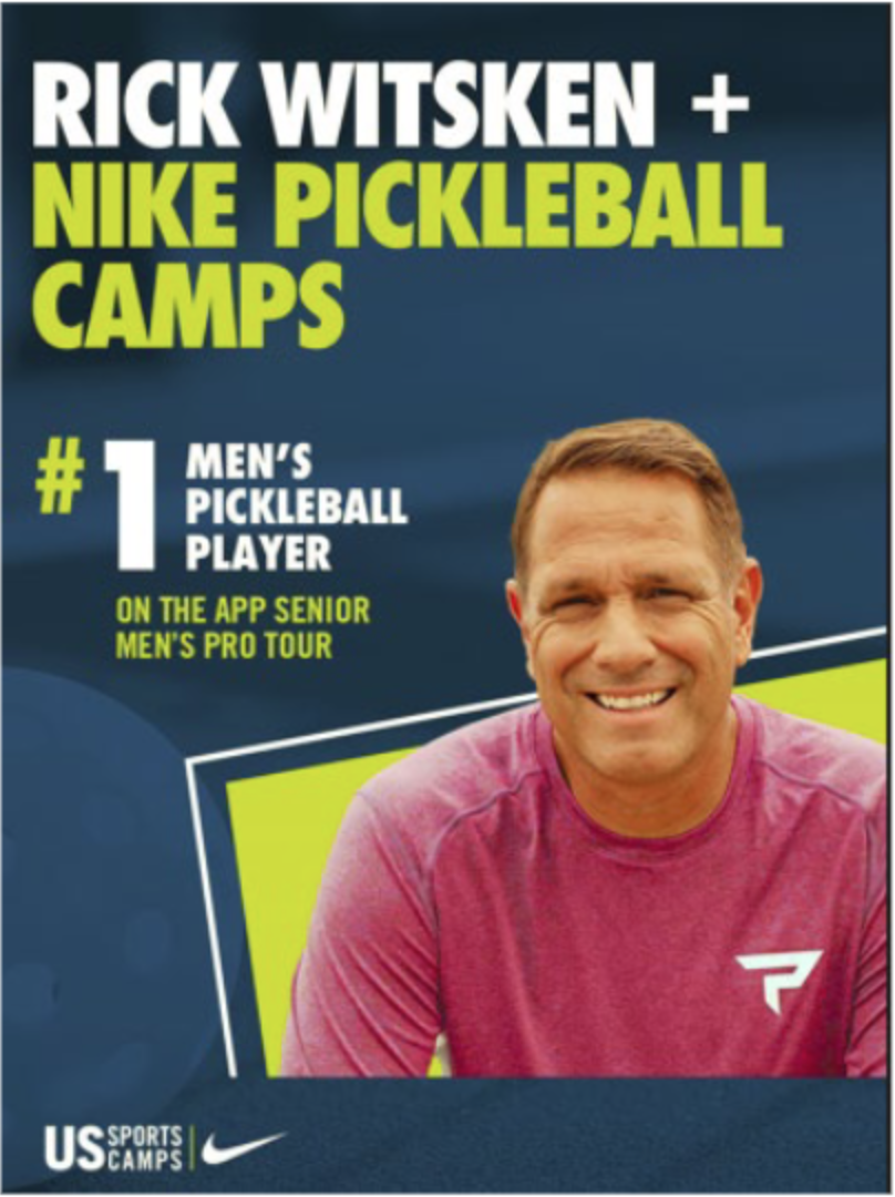 The Nike Pickleball Camp will be led by Rick Witsken, a top ranked senior pro and co-founder of the National Pickleball League (NPL). Previously world-ranked on the Association of Tennis Professionals (ATP) in both singles and doubles play and currently ranked #1 on the Association of Pickleball Players (APP) Senior Pro Men’s standings, Witsken has won more than 100 senior and open pro medals and has served as director of over 50 camps. He currently hosts the “RipSken Pickleball” podcast and posts instructional video online via the Midwest Pickleball club. He also founded the first public scholastic middle school pickleball team at Zionville Middle School in Whitetown, Indiana.