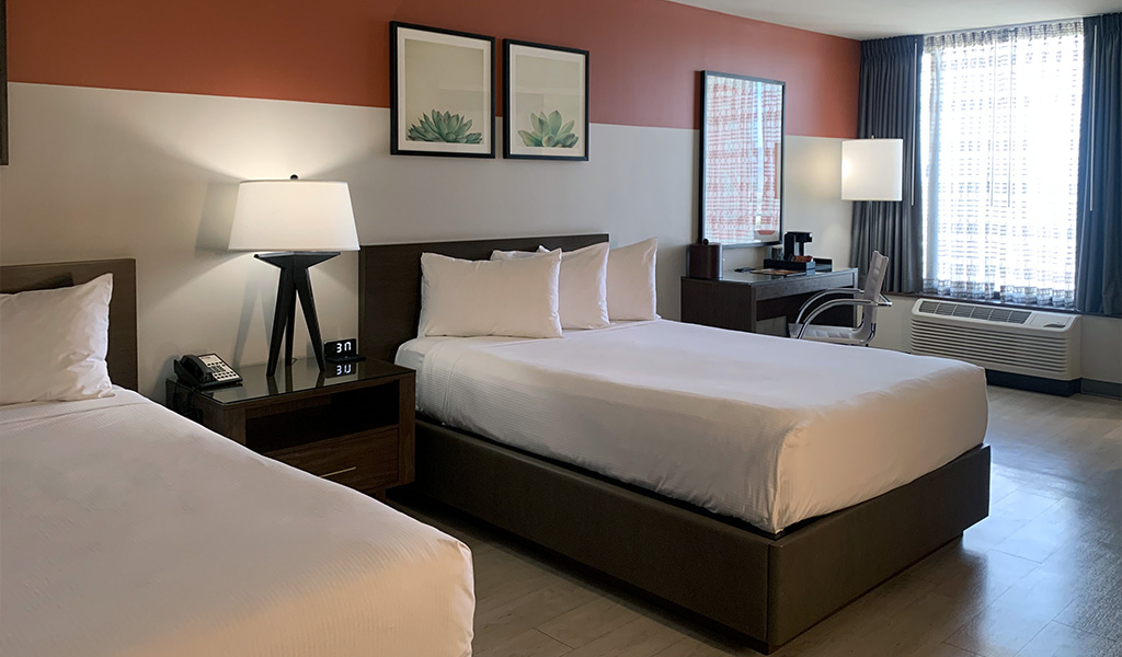 Our recently renovated Pool Patio guest rooms (approximately 325 internal square feet) offer a unique, comfortable space, 55-inch flat screen TV with premium cable channels, in-room safe, mini refrigerator, and coffee maker and premium bath amenities. Each bed features luxury bedding with fresh and crisp triple sheeting and select pillows. Rooms are equipped with walk in showers and a private covered patio, which leads to the pool area. Our Patio rooms are USB friendly.