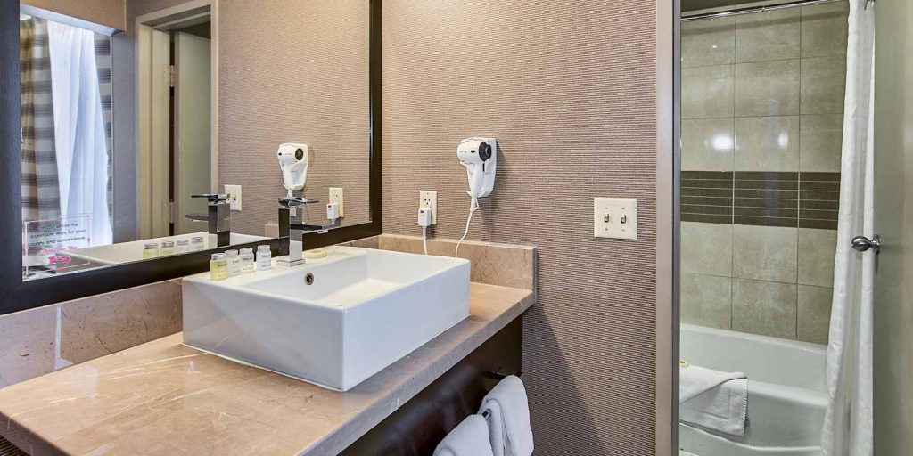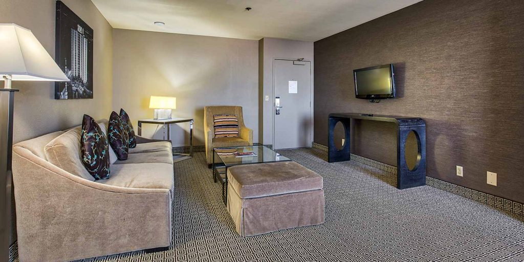 Our one bedroom suites (approximately 650 square feet) come with a living room parlor, a total of 1.5 bathrooms, in-room safe, multiple flat-screen televisions with premium cable channels, mini refrigerator, coffee maker, wet bar and all of our deluxe room amenities. Each bed features luxury bedding with fresh and crisp triple sheeting and select pillows.